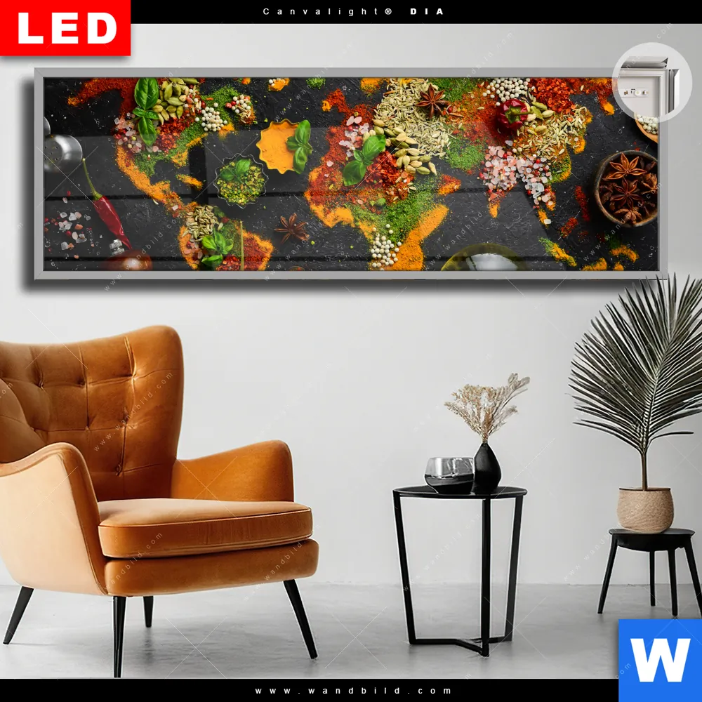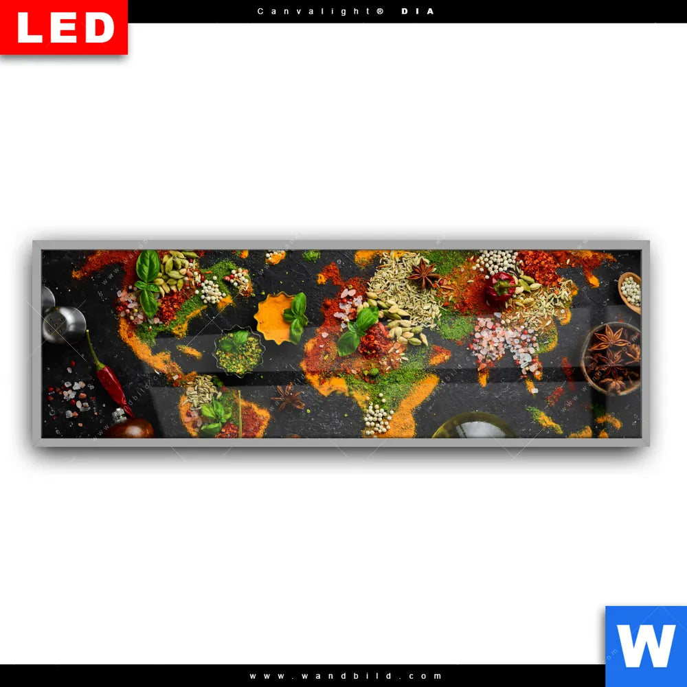 Canvalight® DIA Leuchtbild | Die Weltkarte der Gewürze | Panorama