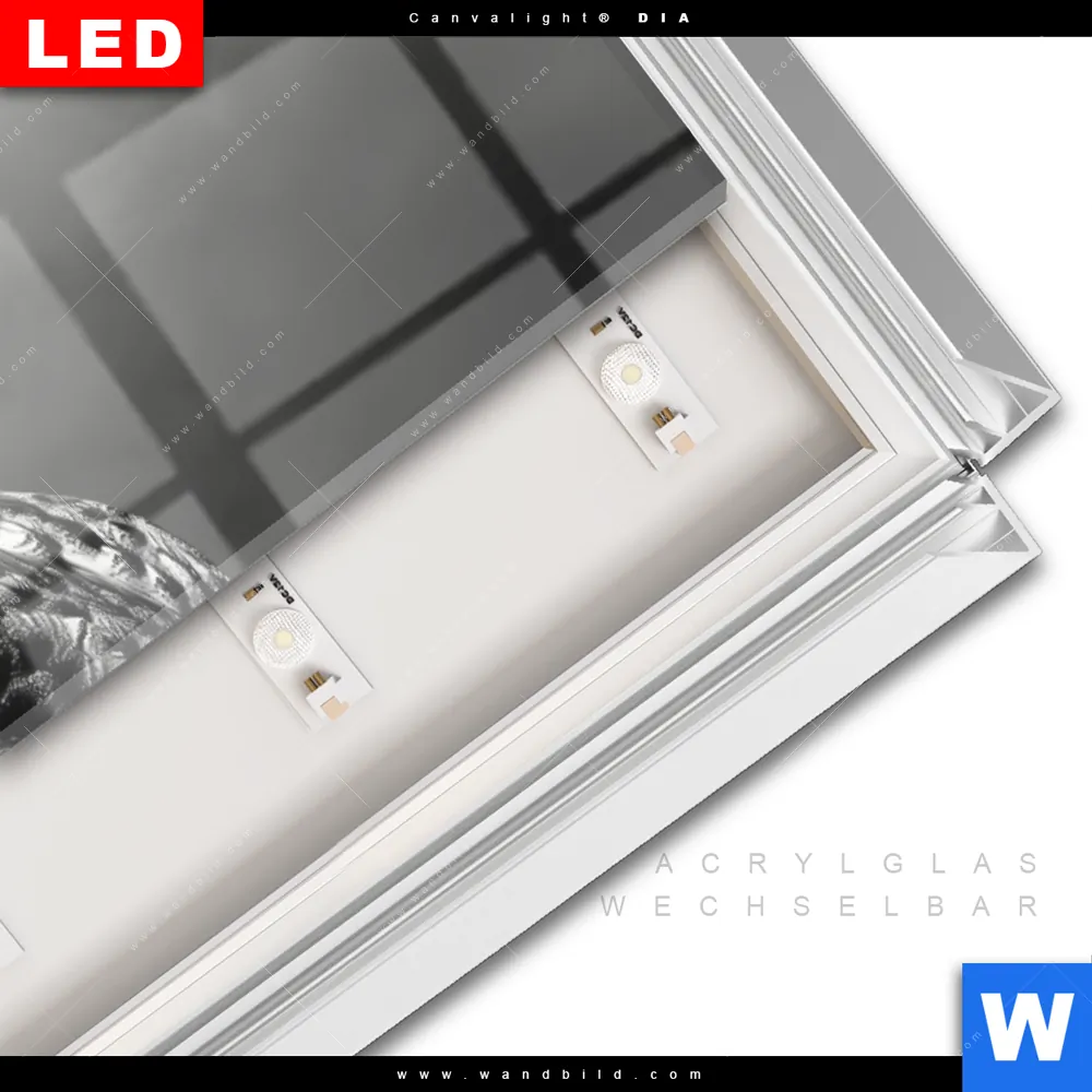 LED-Glasbild mit austauschbarem Acrylglas-Druck (Wechselbild)