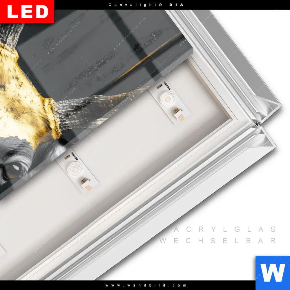 LED-Glasbild mit austauschbarem Acrylglas-Druck (Wechselbild)