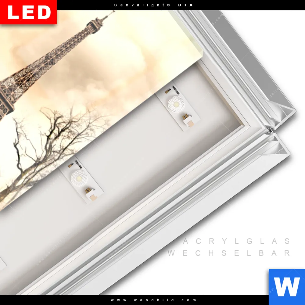 LED-Glasbild mit austauschbarem Acrylglas-Druck (Wechselbild)