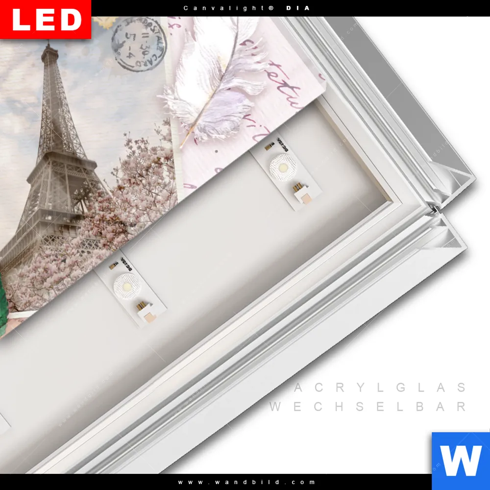 Canvalight® DIA Leuchtbild | Eifelturm & Rosen | Hochformat