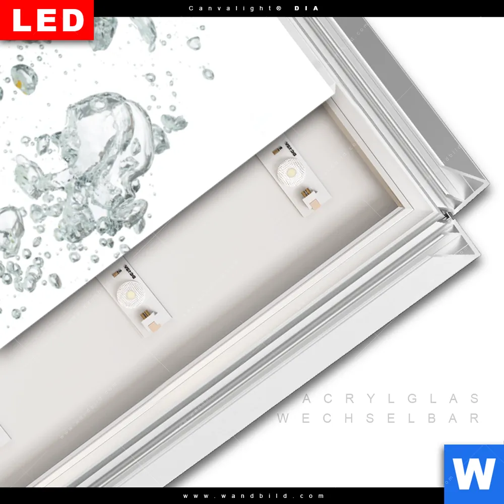 LED-Glasbild mit austauschbarem Acrylglas-Druck (Wechselbild)
