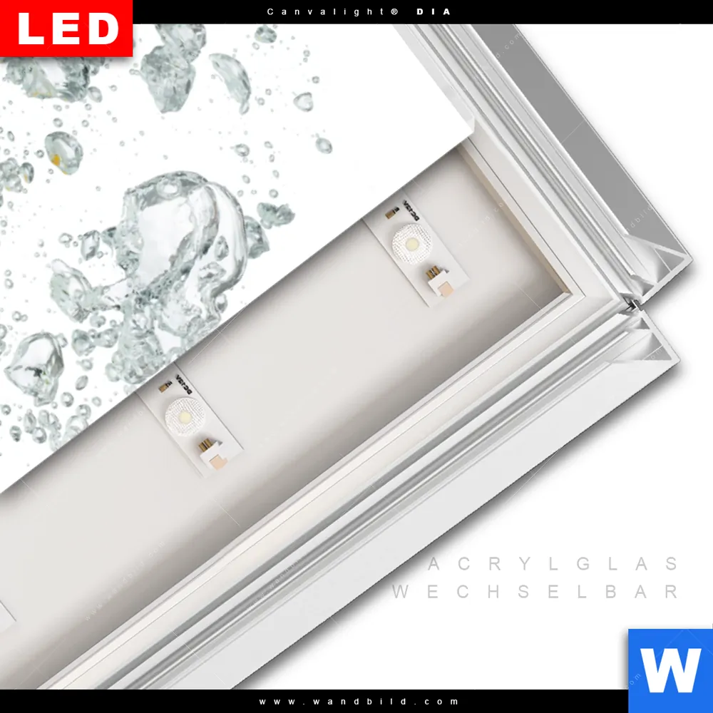LED-Glasbild mit austauschbarem Acrylglas-Druck (Wechselbild)