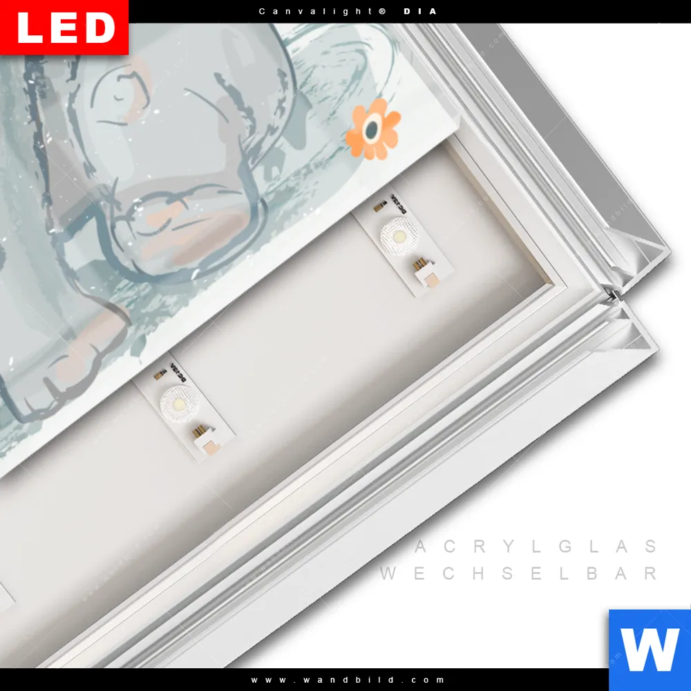 LED-Glasbild mit austauschbarem Acrylglas-Druck (Wechselbild)