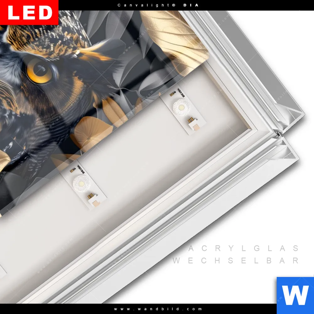 LED-Glasbild mit austauschbarem Acrylglas-Druck (Wechselbild)