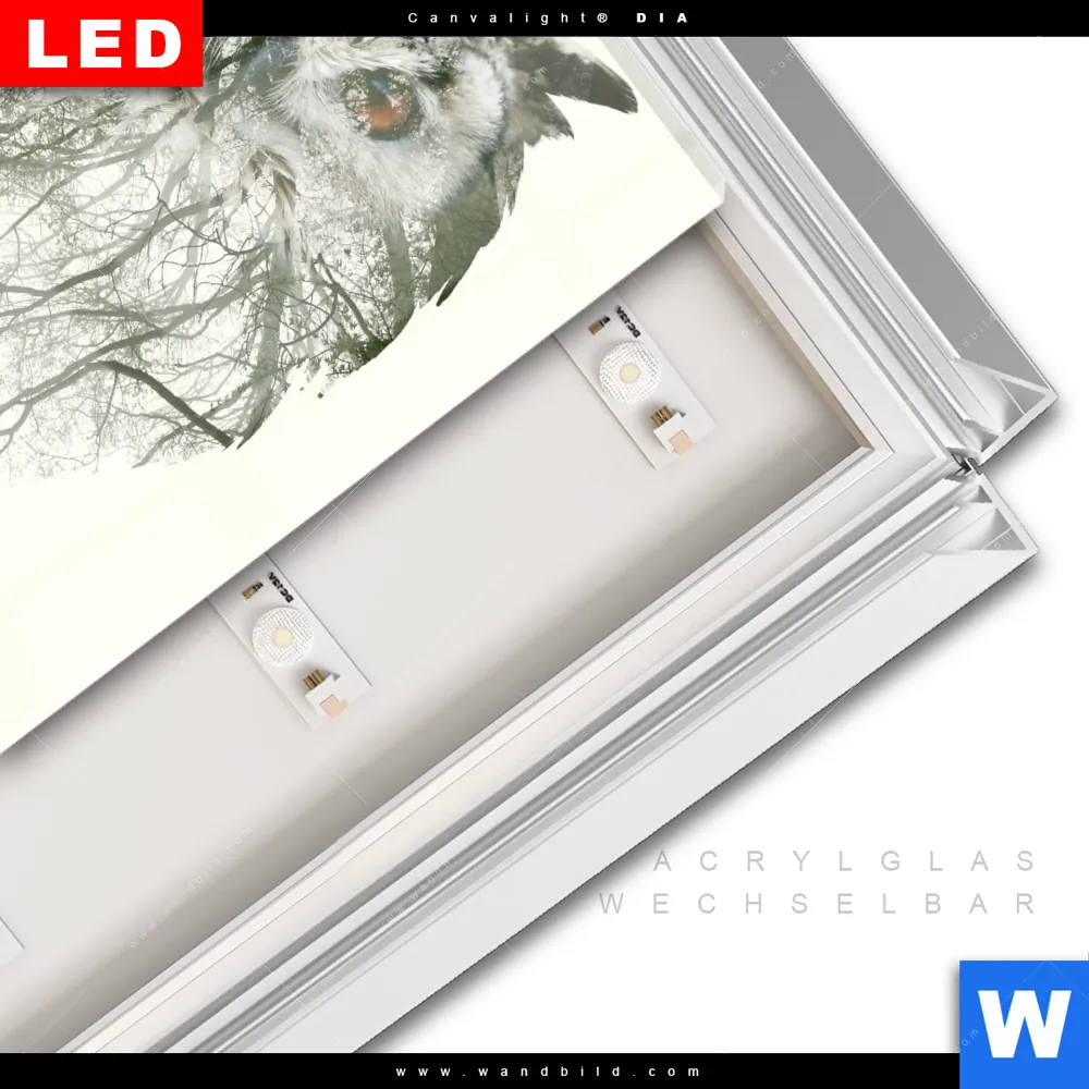 LED-Glasbild mit austauschbarem Acrylglas-Druck (Wechselbild)