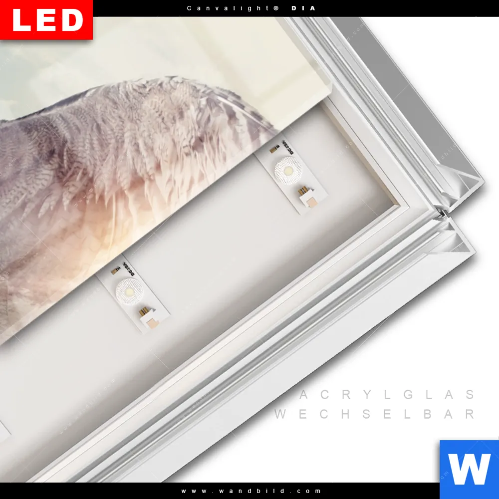 LED-Glasbild mit austauschbarem Acrylglas-Druck (Wechselbild)