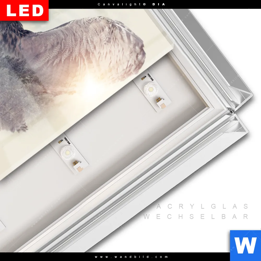 LED-Glasbild mit austauschbarem Acrylglas-Druck (Wechselbild)