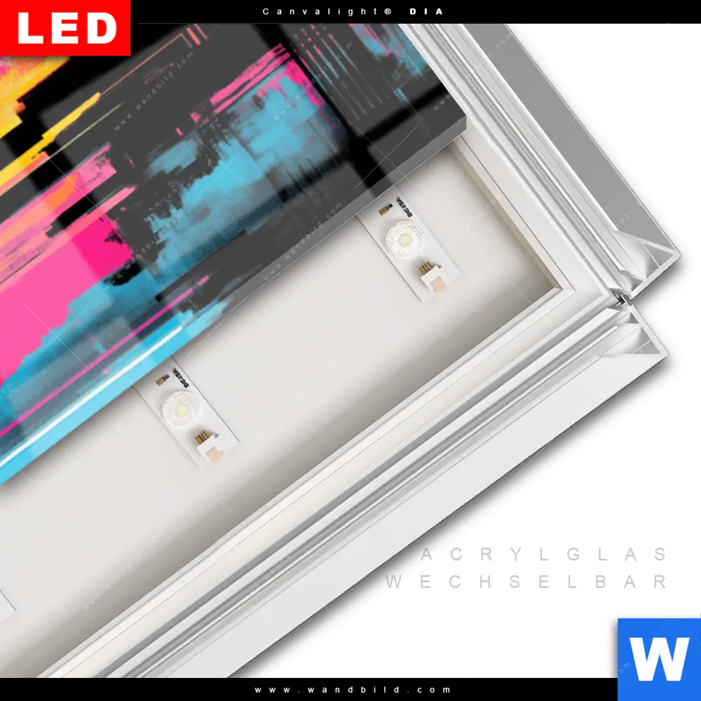 LED-Glasbild mit austauschbarem Acrylglas-Druck (Wechselbild)