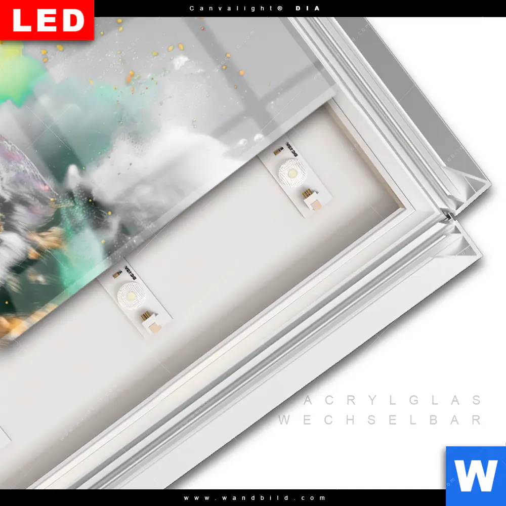 LED-Glasbild mit austauschbarem Acrylglas-Druck (Wechselbild)