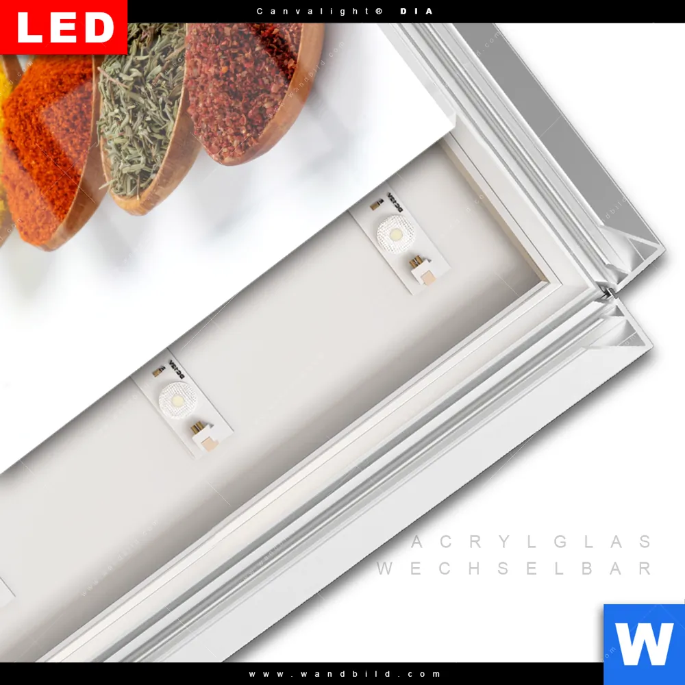 LED-Glasbild mit austauschbarem Acrylglas-Druck (Wechselbild)