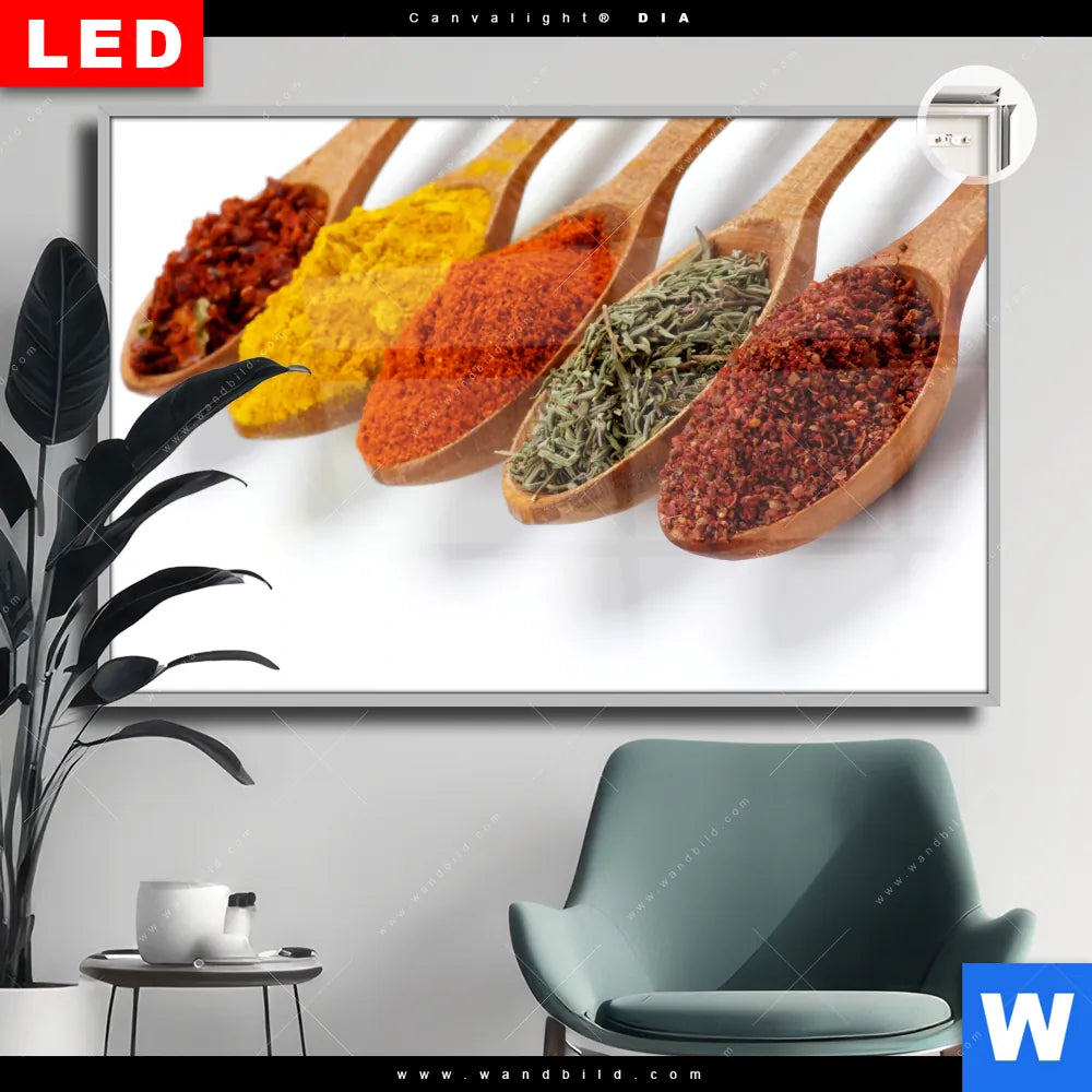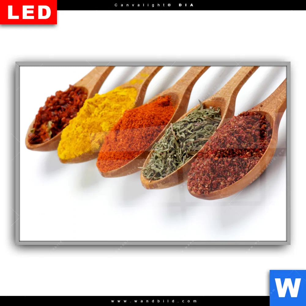 Canvalight® DIA Leuchtbild | Farbige Gewürze auf Holzlöffel | Querformat
