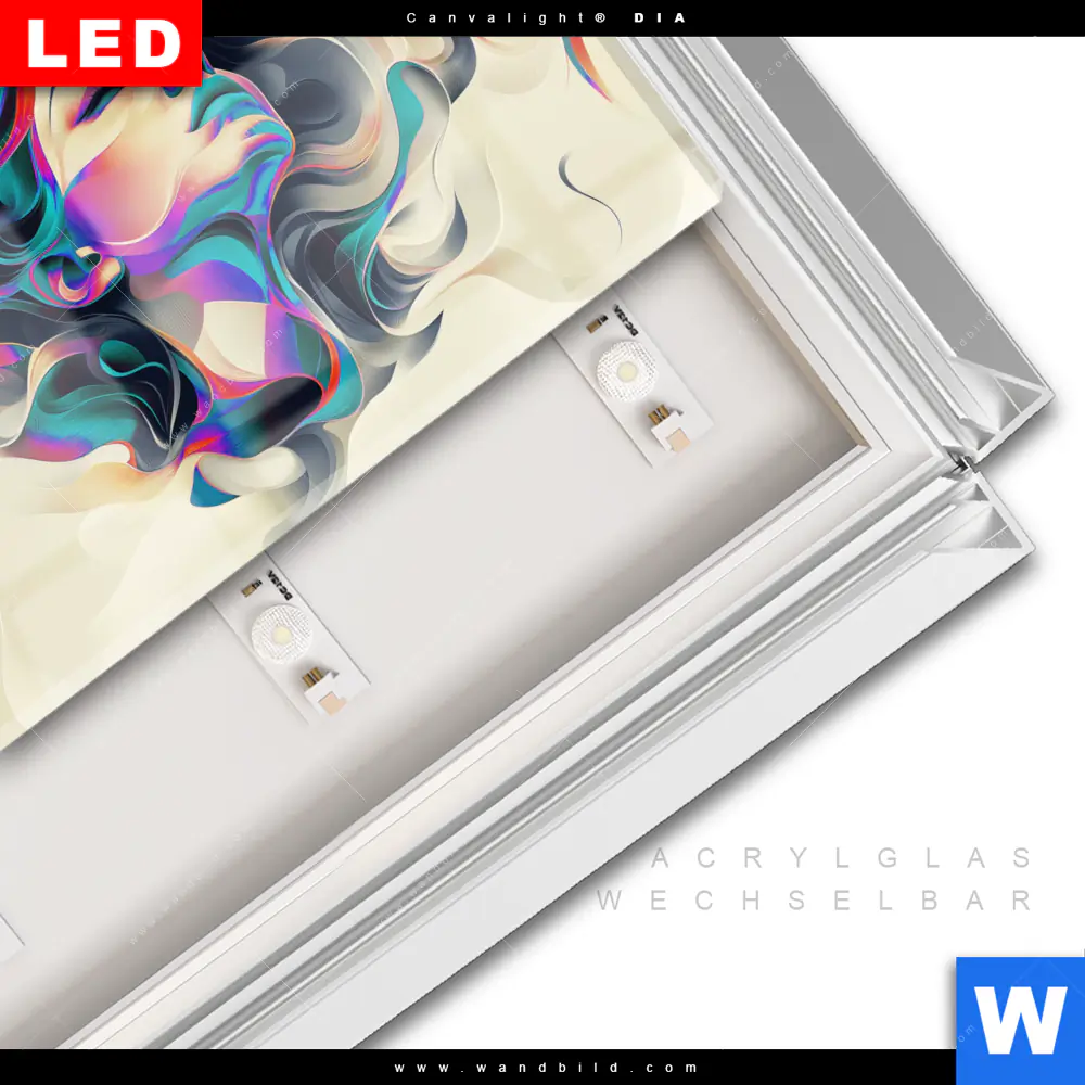 LED-Glasbild mit austauschbarem Acrylglas-Druck (Wechselbild)