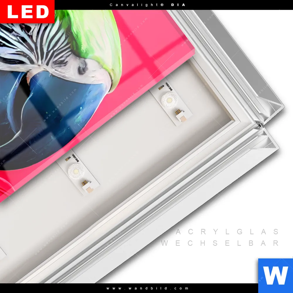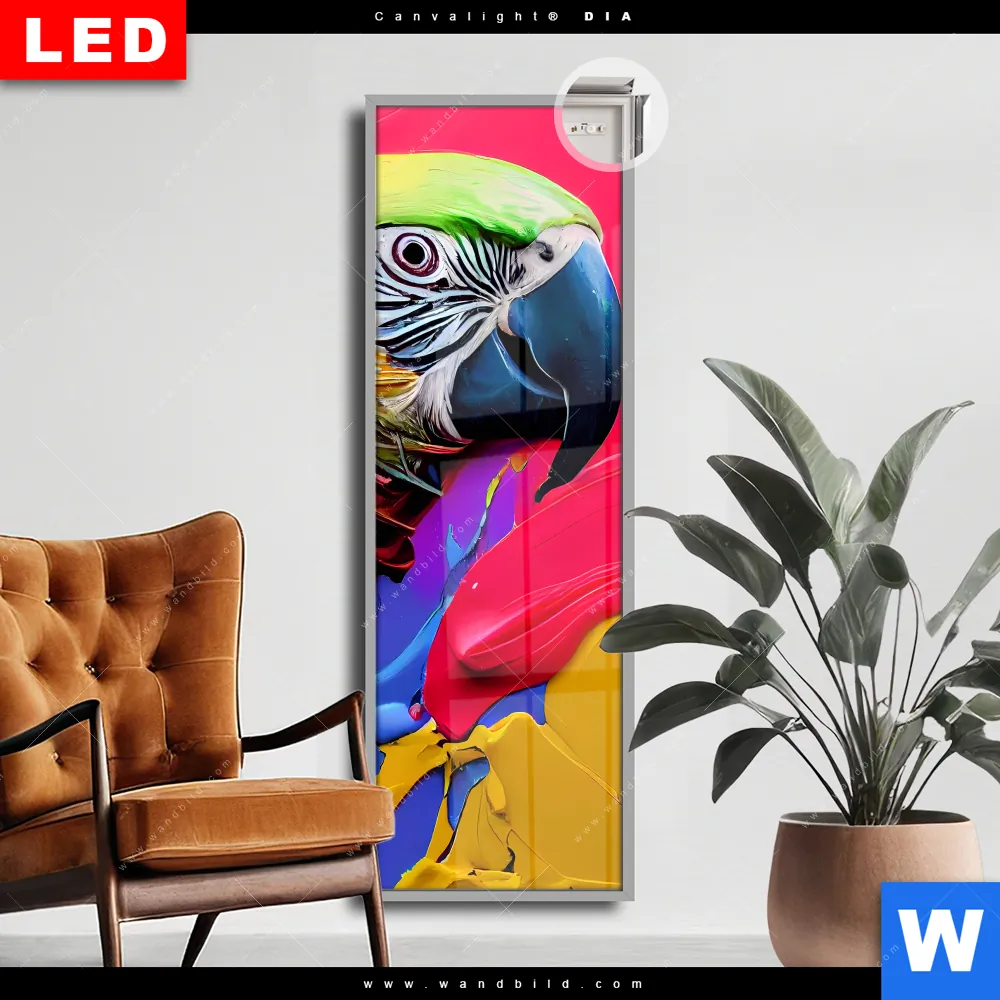 Canvalight® DIA Leuchtbild | Federn Papagei | Schmal