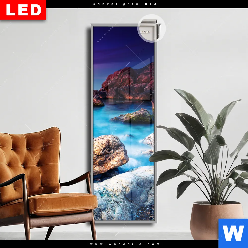 Canvalight® DIA Leuchtbild | Felsen im Meer | Schmal