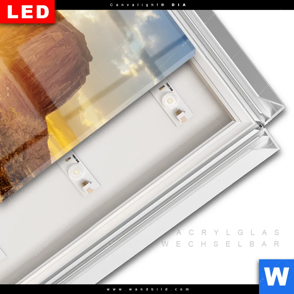 LED-Glasbild mit austauschbarem Acrylglas-Druck (Wechselbild)