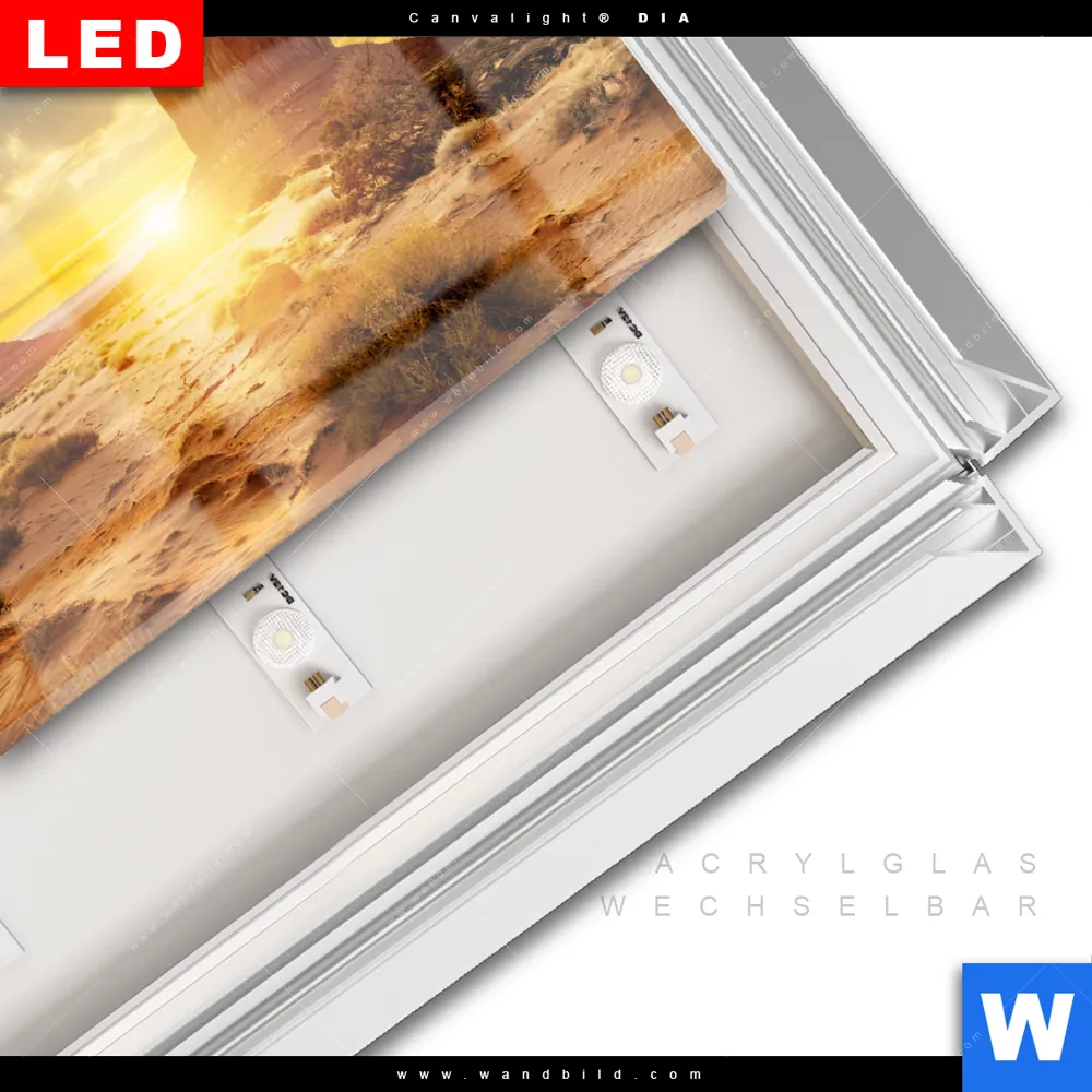 LED-Glasbild mit austauschbarem Acrylglas-Druck (Wechselbild)