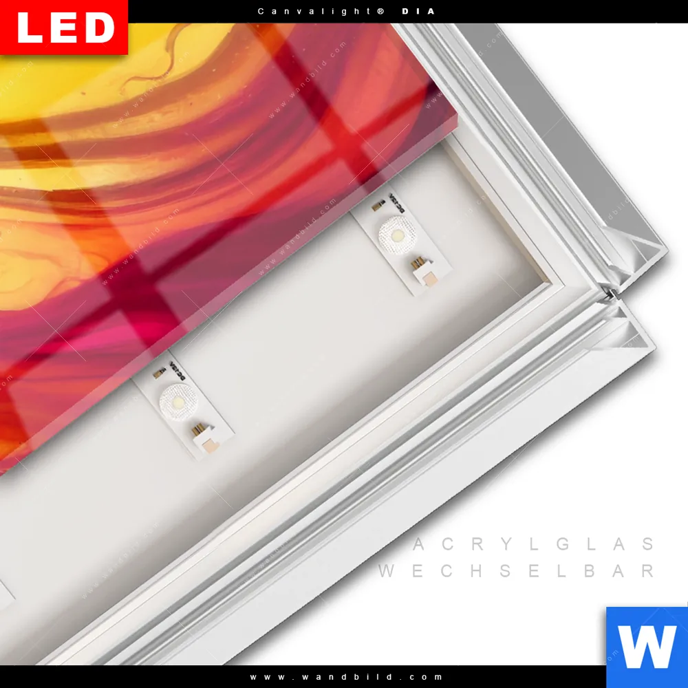 LED-Glasbild mit austauschbarem Acrylglas-Druck (Wechselbild)