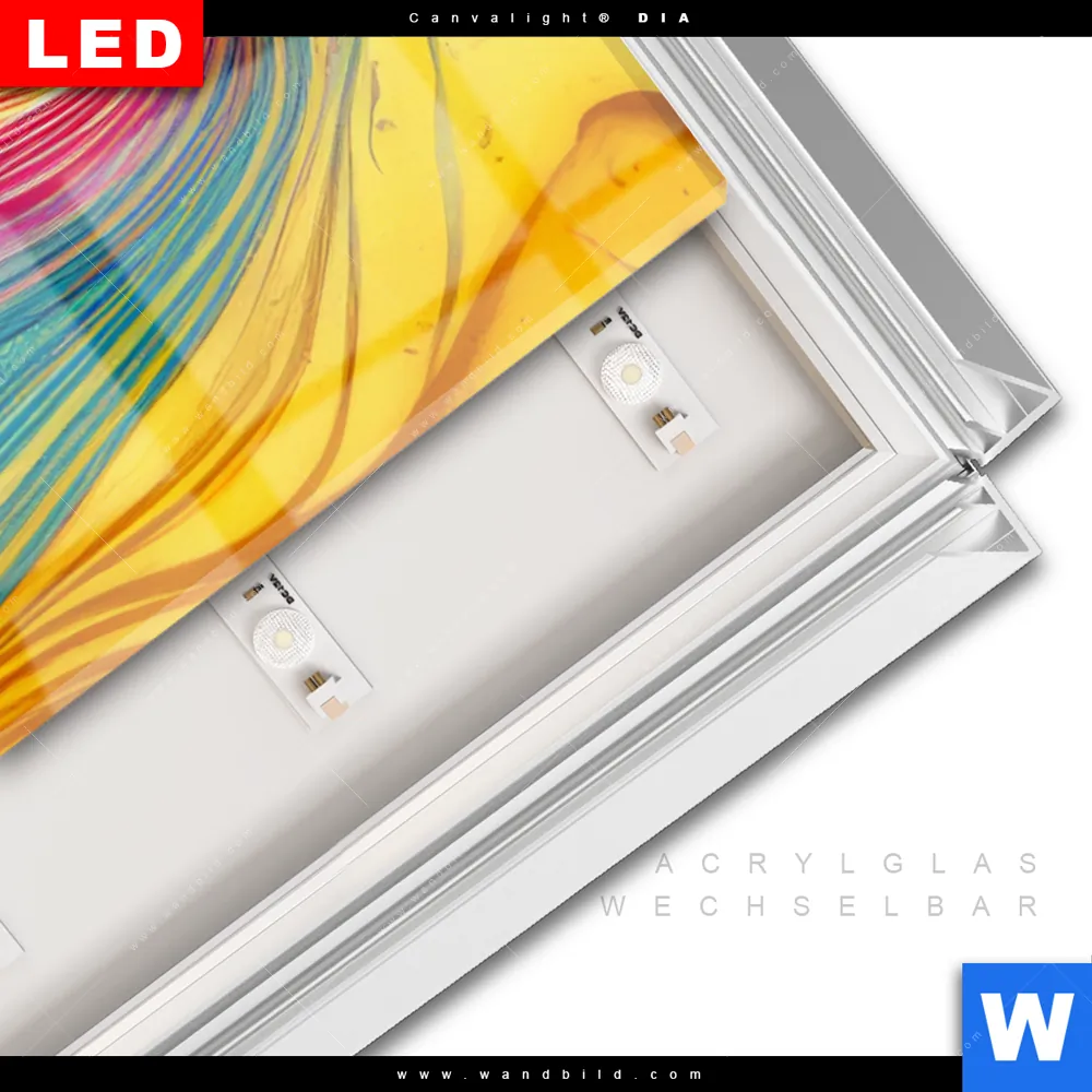 LED-Glasbild mit austauschbarem Acrylglas-Druck (Wechselbild)