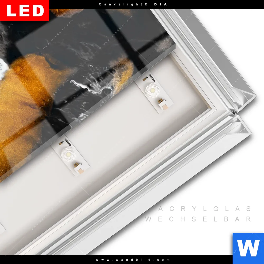 LED-Glasbild mit austauschbarem Acrylglas-Druck (Wechselbild)