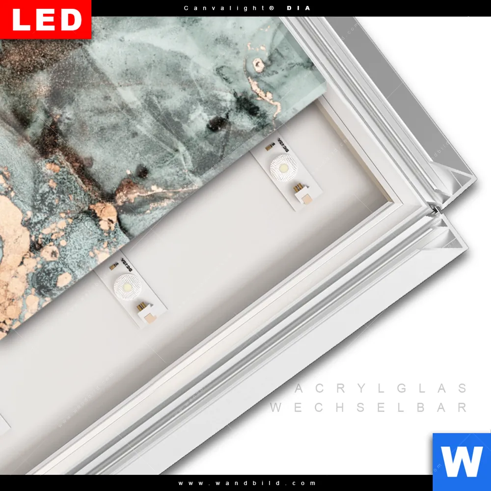 LED-Glasbild mit austauschbarem Acrylglas-Druck (Wechselbild)