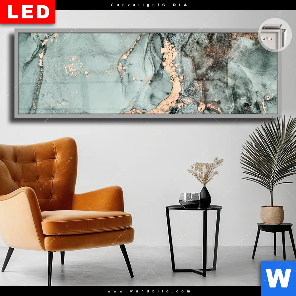 Canvalight® DIA Leuchtbild | Fluid Art Türkis | Panorama