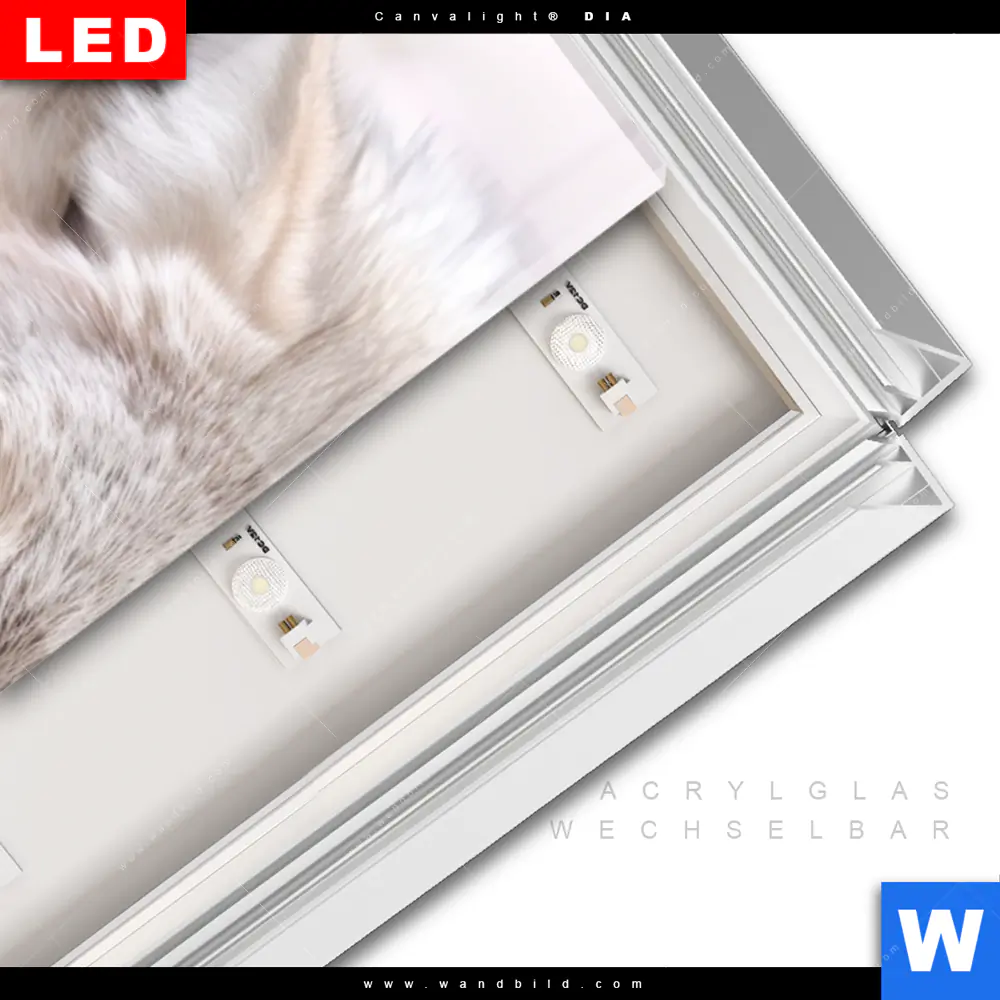 LED-Glasbild mit austauschbarem Acrylglas-Druck (Wechselbild)