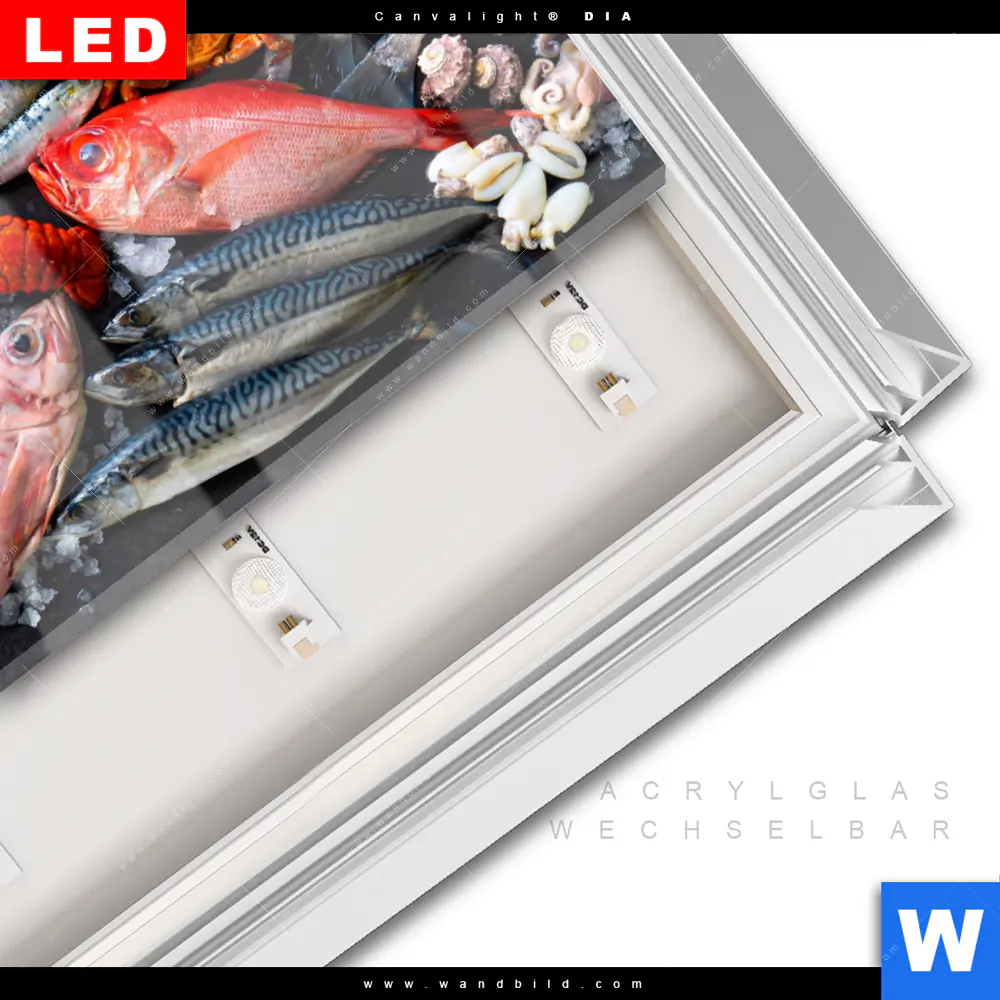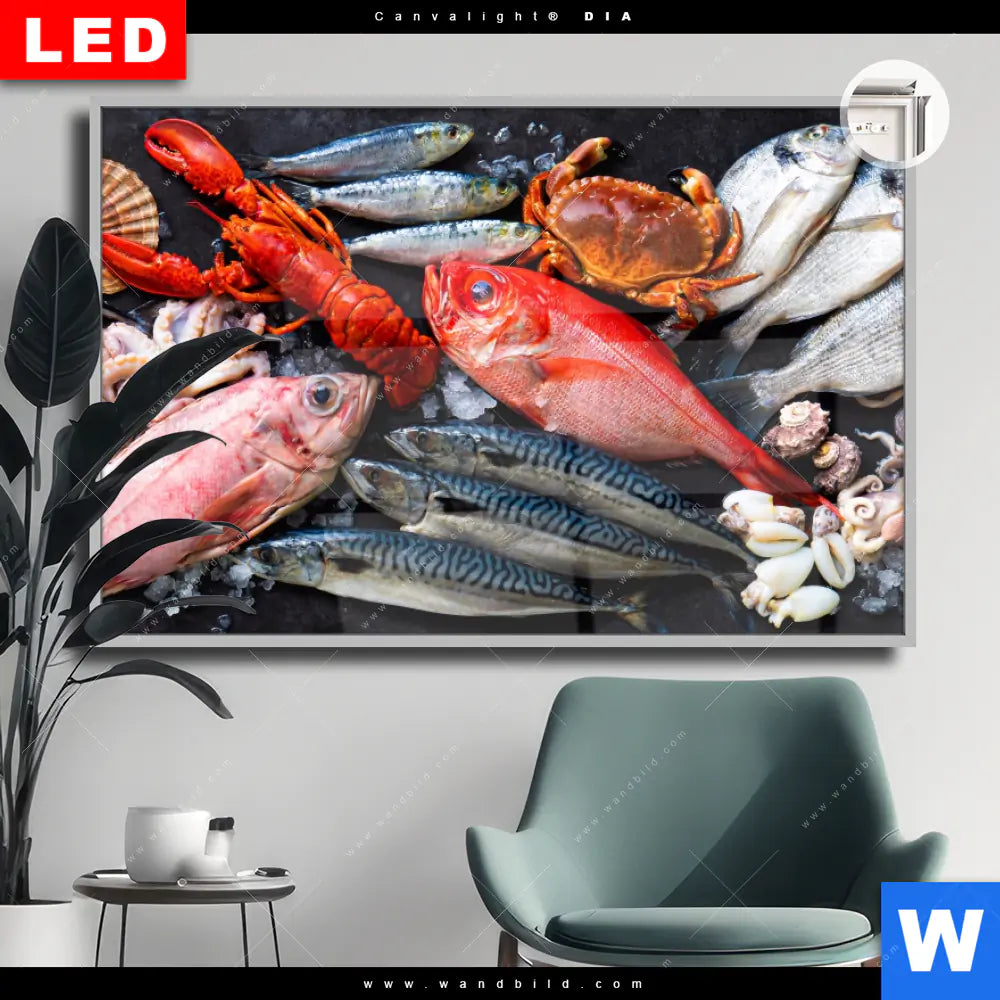 Canvalight® DIA Leuchtbild | Frischer Fisch und Meeresfrüchte | Querformat