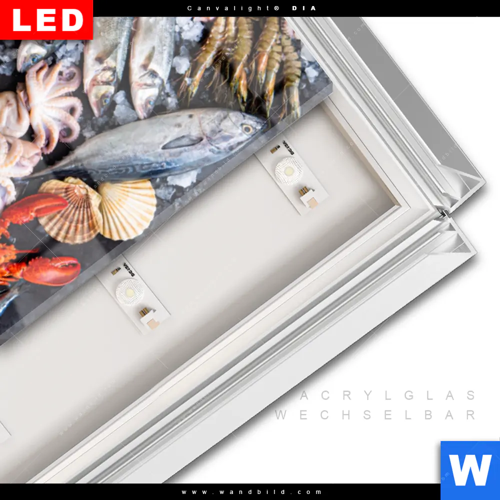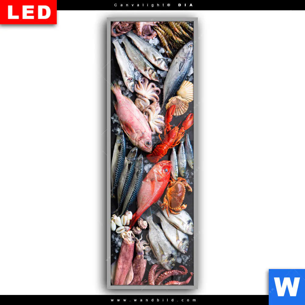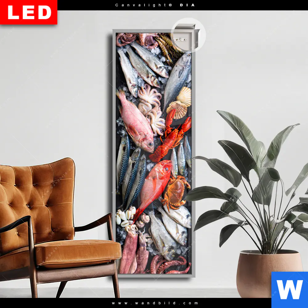 Canvalight® DIA Leuchtbild | Frischer Fisch und Meeresfrüchte | Schmal