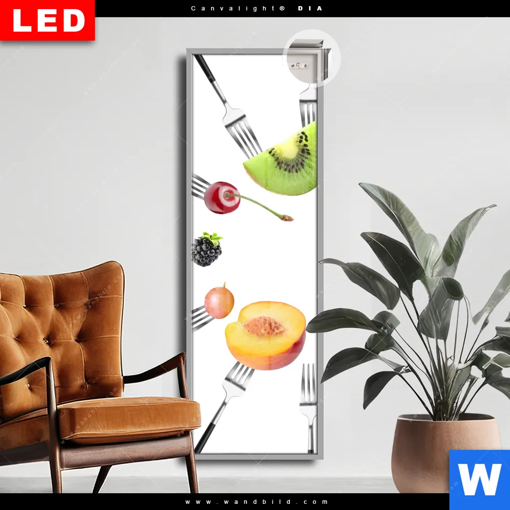 Canvalight® DIA Leuchtbild | Früchte auf Gabeln | Schmal