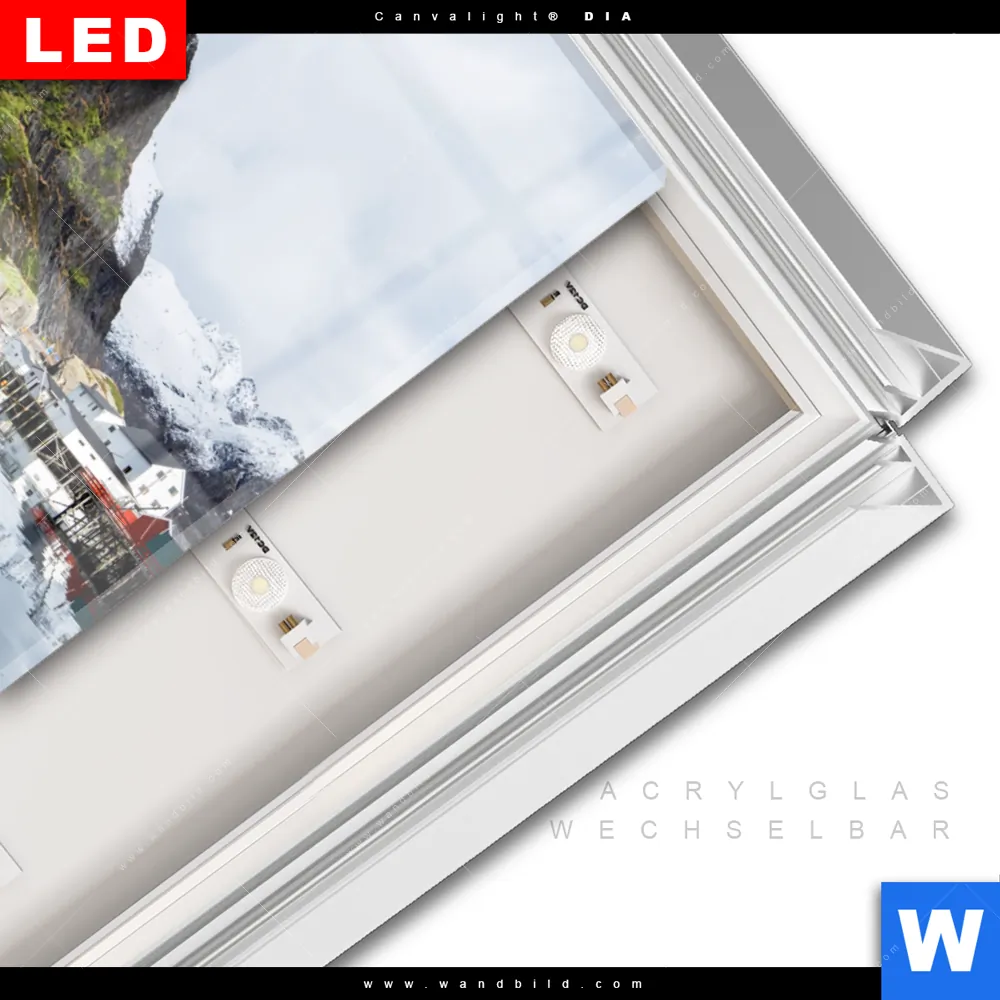 LED-Glasbild mit austauschbarem Acrylglas-Druck (Wechselbild)