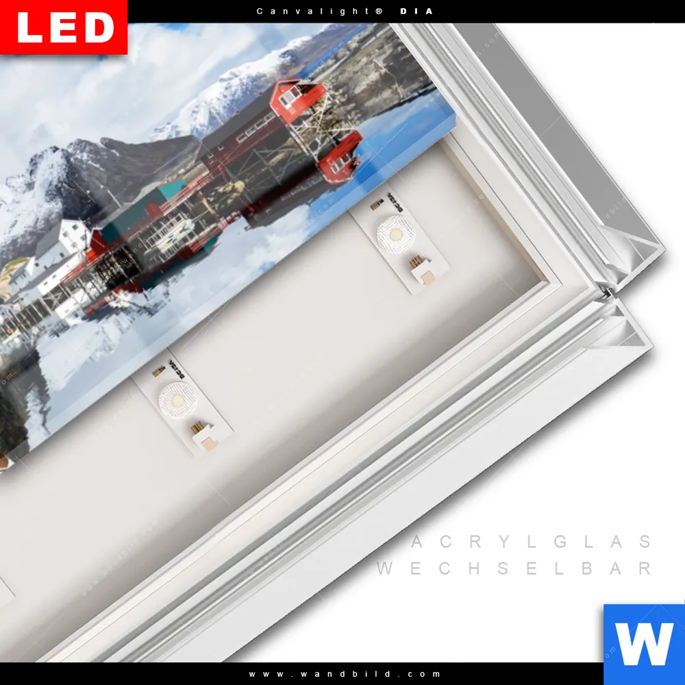 LED-Glasbild mit austauschbarem Acrylglas-Druck (Wechselbild)