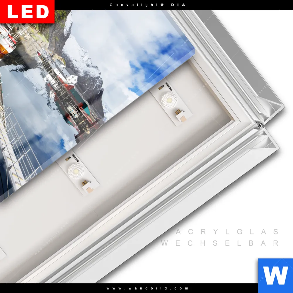 LED-Glasbild mit austauschbarem Acrylglas-Druck (Wechselbild)