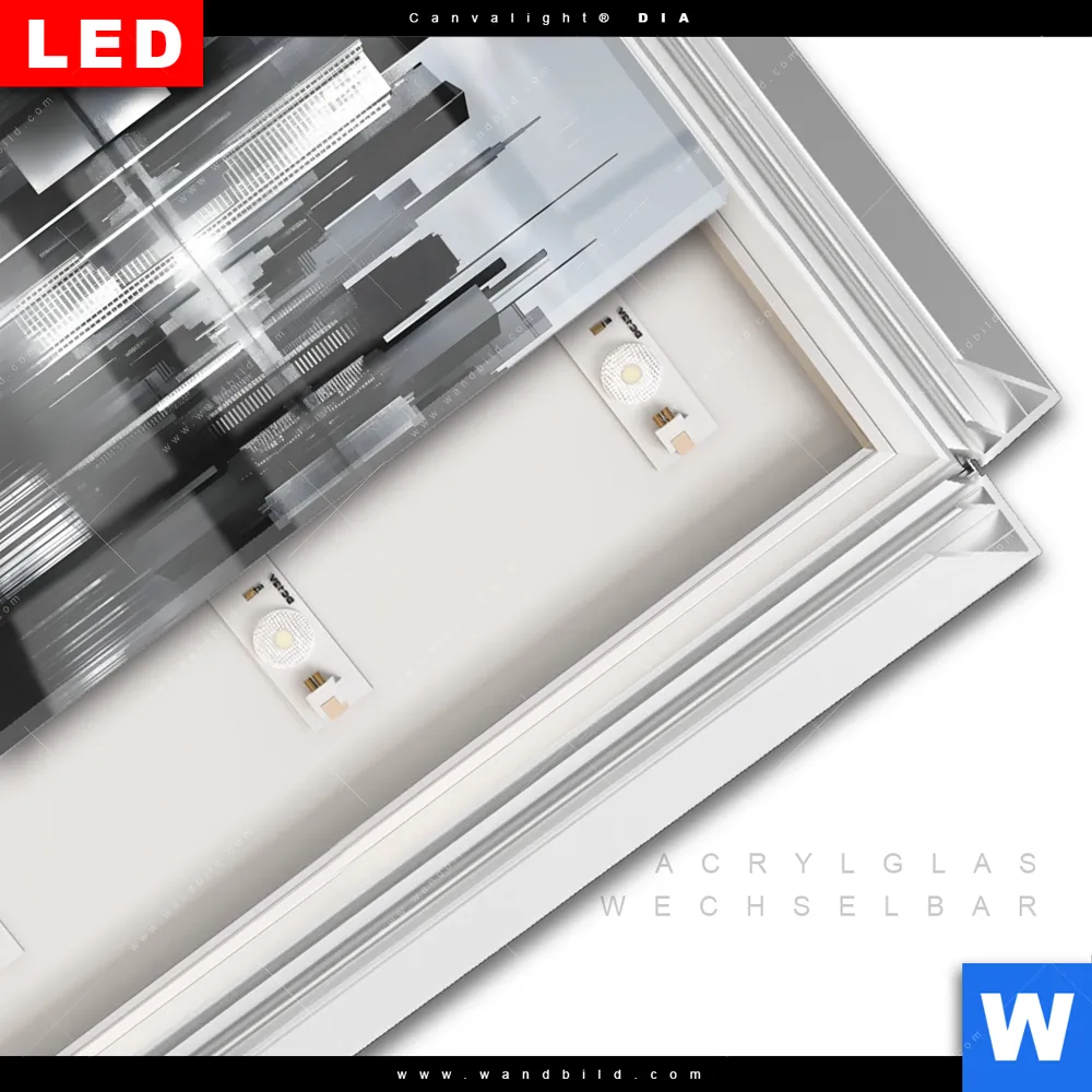 LED-Glasbild mit austauschbarem Acrylglas-Druck (Wechselbild)