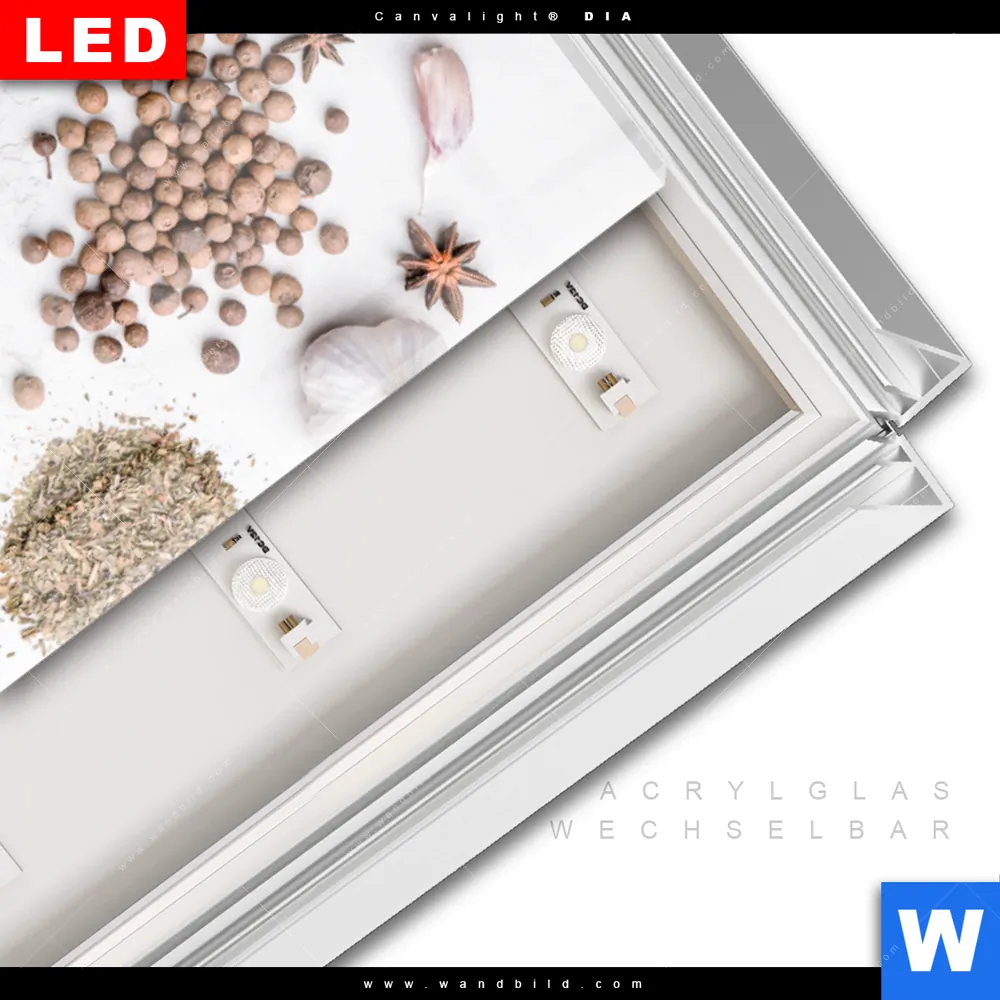 Canvalight® DIA Leuchtbild | Gewürze auf hellem Untergrund | Schmal