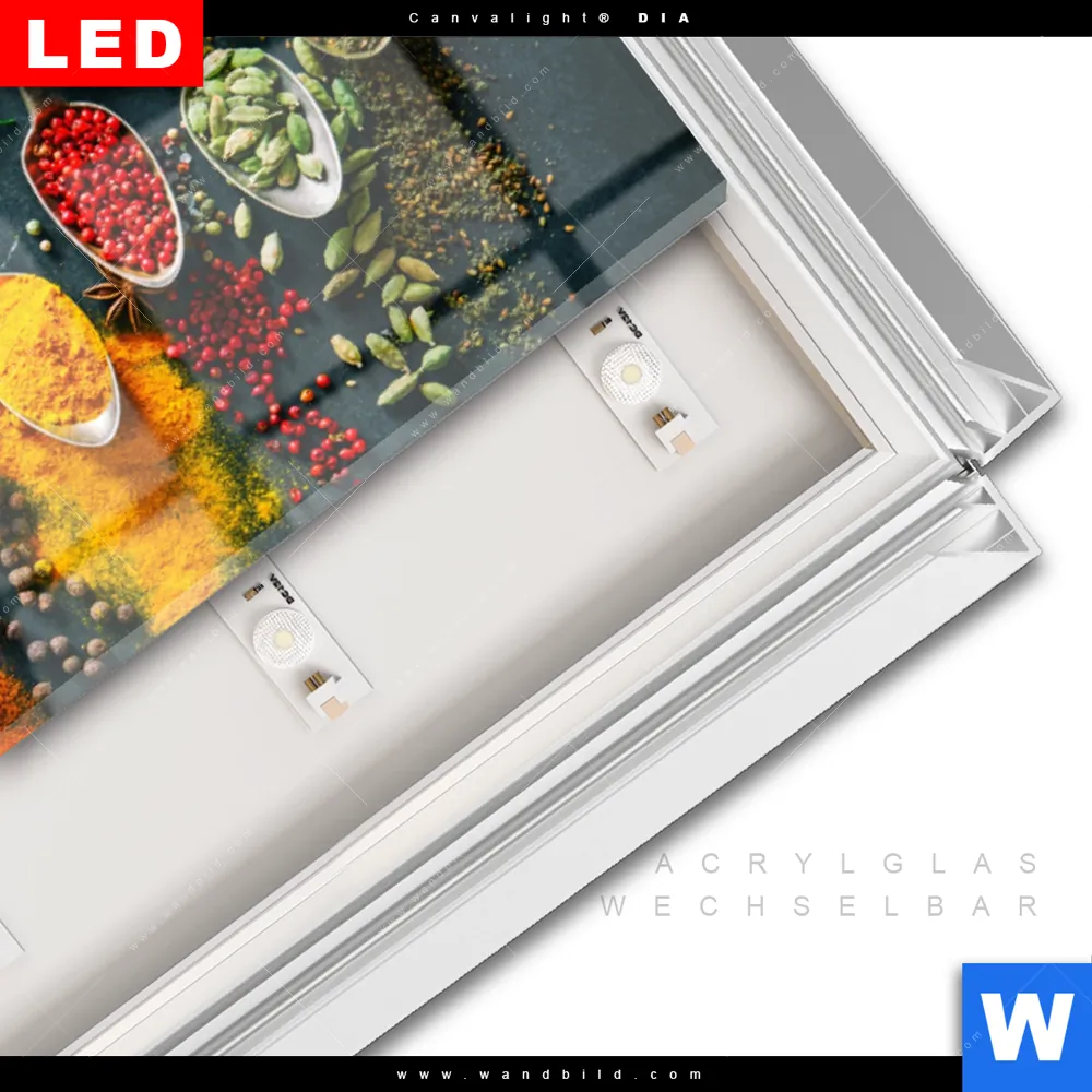 LED-Glasbild mit austauschbarem Acrylglas-Druck (Wechselbild)