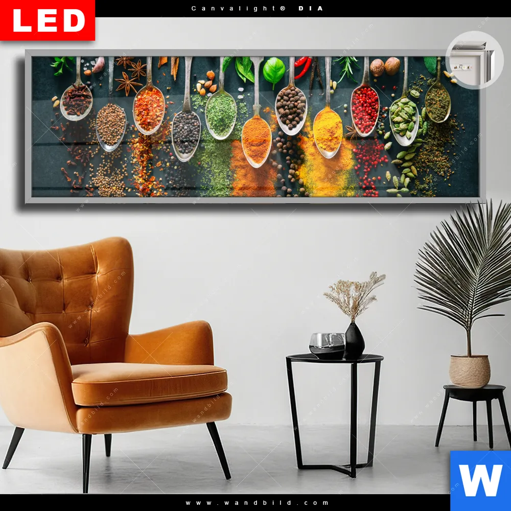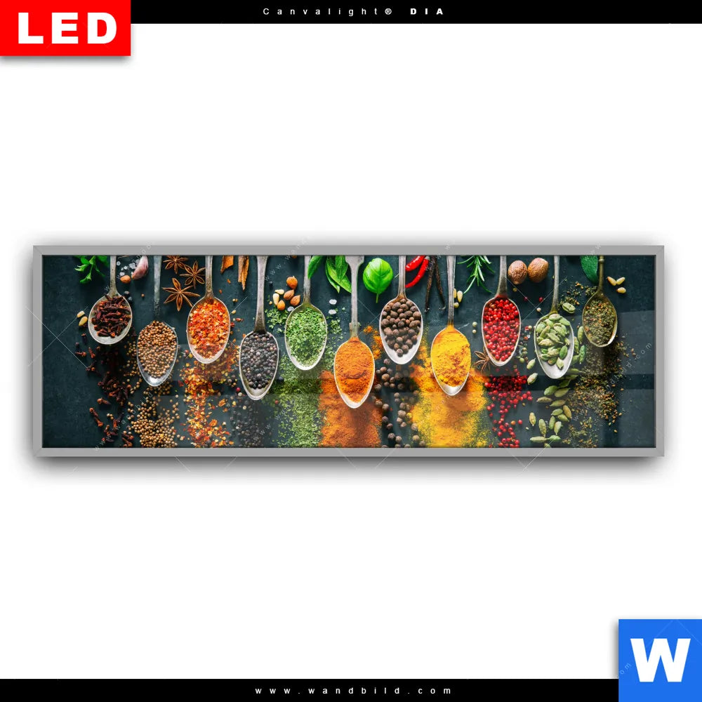 Canvalight® DIA Leuchtbild | Gewürze auf Löffeln | Panorama