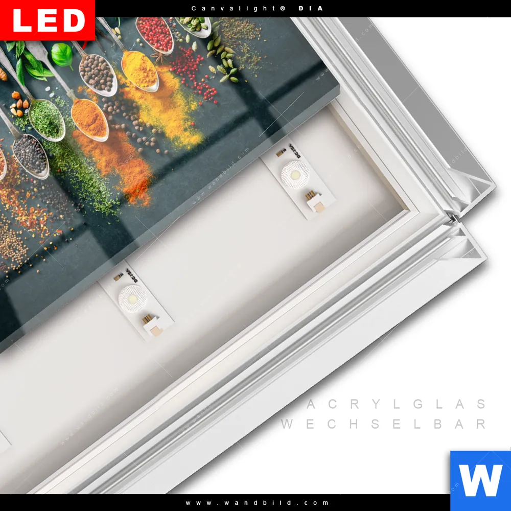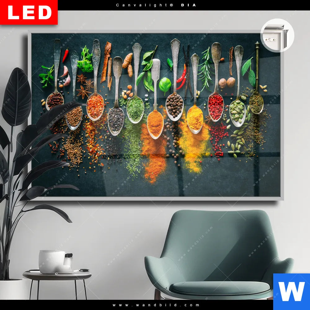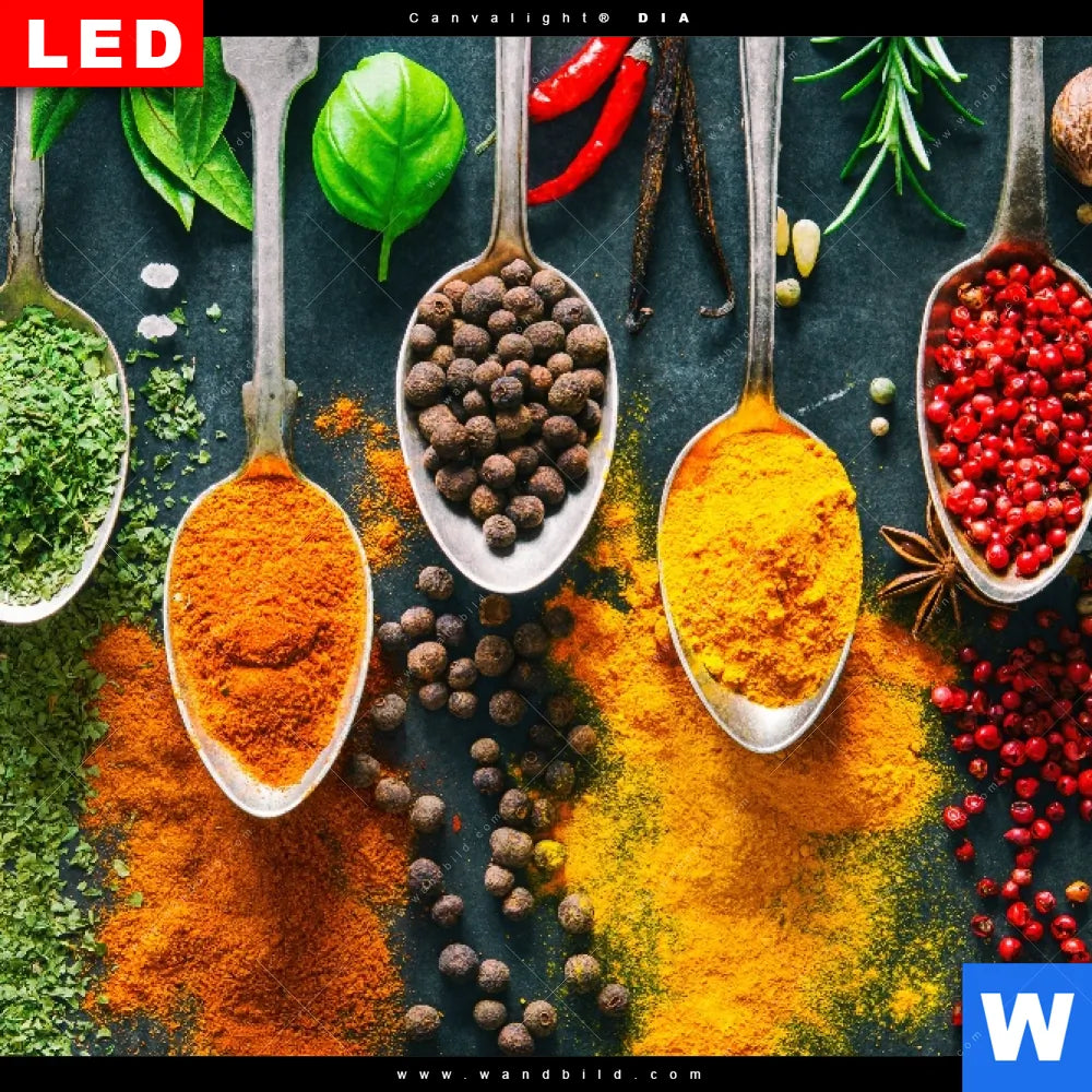 Canvalight® DIA Leuchtbild | Gewürze auf Löffeln | Querformat