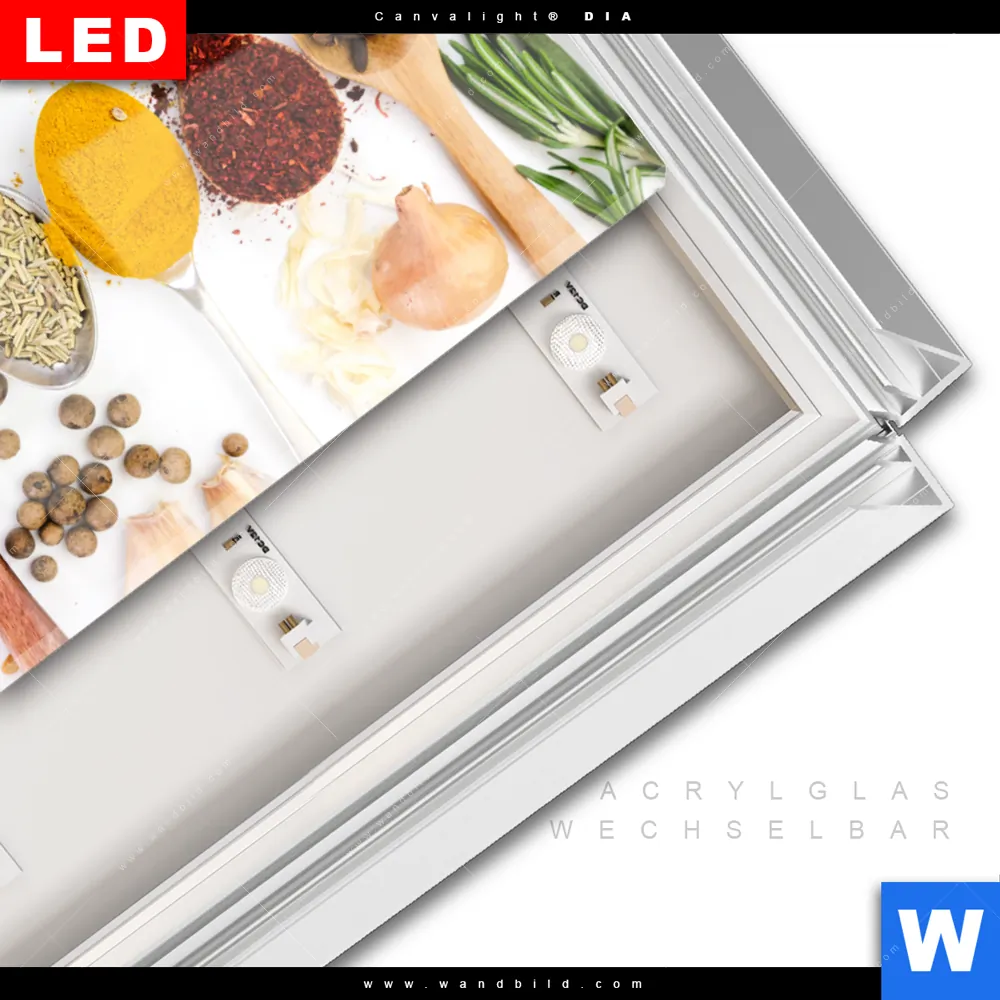 LED-Glasbild mit austauschbarem Acrylglas-Druck (Wechselbild)