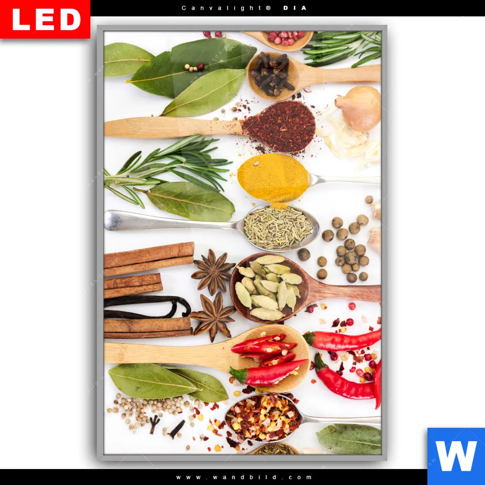 Canvalight® DIA Leuchtbild | Gewürze auf Löffeln - weiß | Hochformat