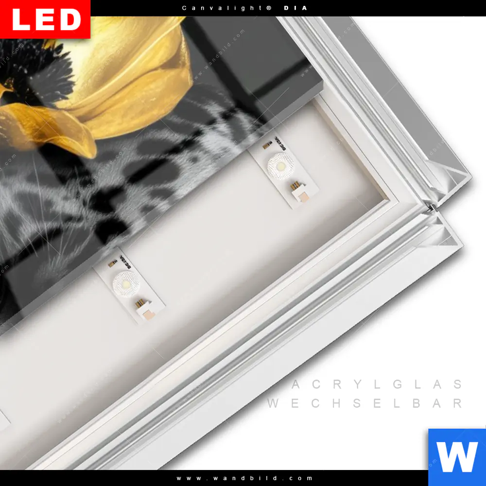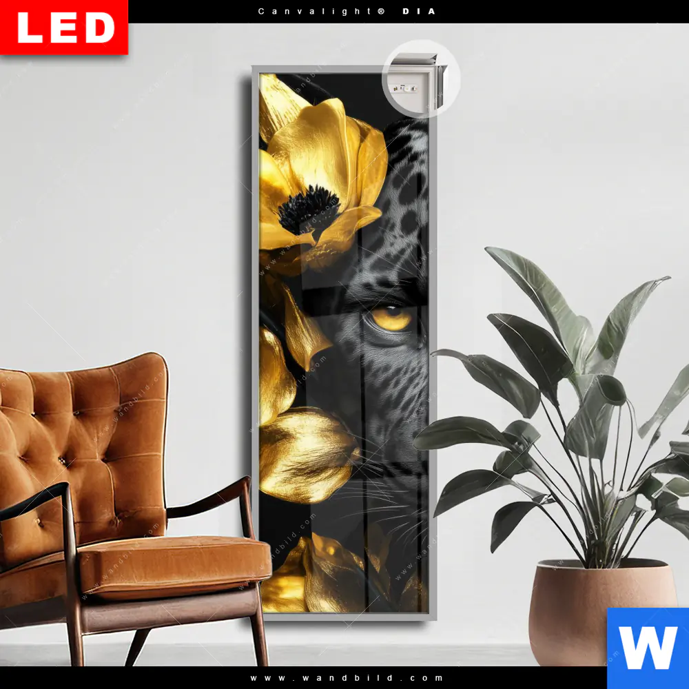 Canvalight® DIA Leuchtbild | Goldblumen & Panther | Schmal