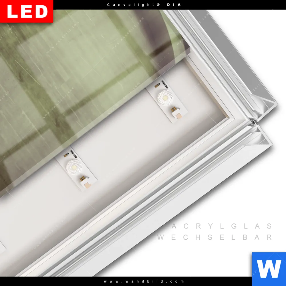 LED-Glasbild mit austauschbarem Acrylglas-Druck (Wechselbild)