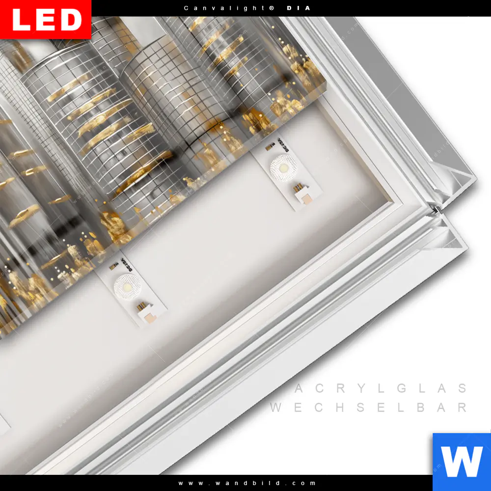 LED-Glasbild mit austauschbarem Acrylglas-Druck (Wechselbild)