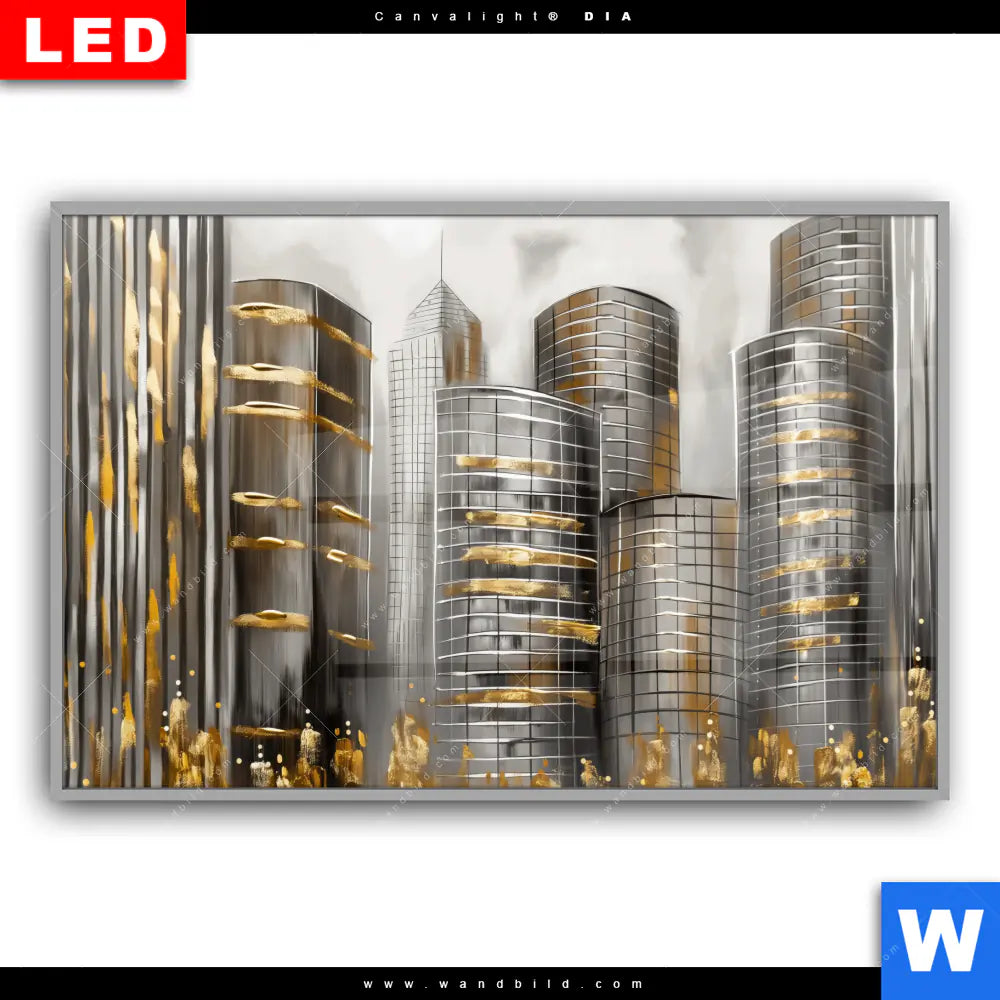 Canvalight® DIA Leuchtbild | Goldene Skyline Vision | Querformat