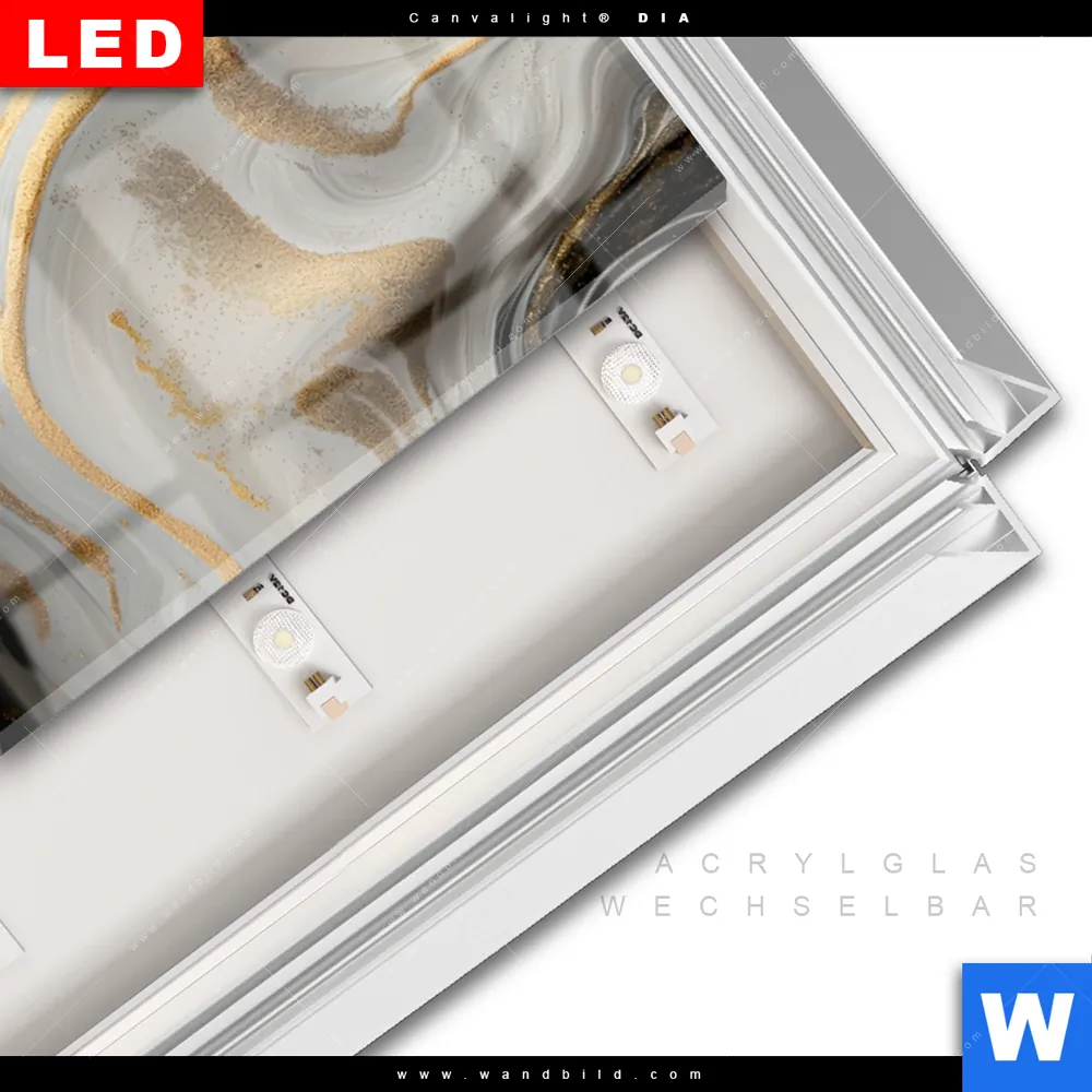 LED-Glasbild mit austauschbarem Acrylglas-Druck (Wechselbild)