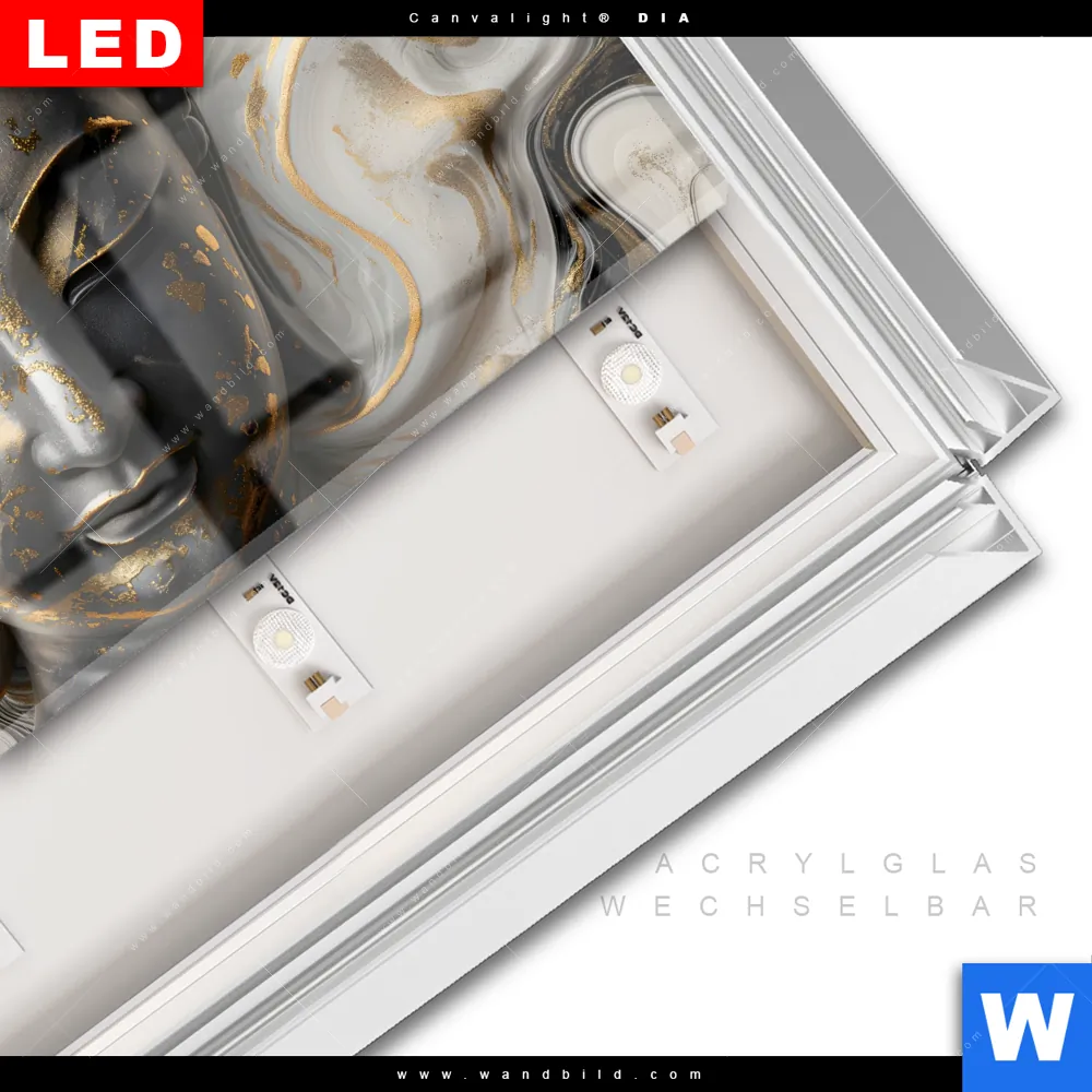 LED-Glasbild mit austauschbarem Acrylglas-Druck (Wechselbild)