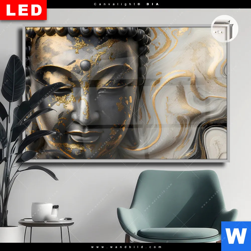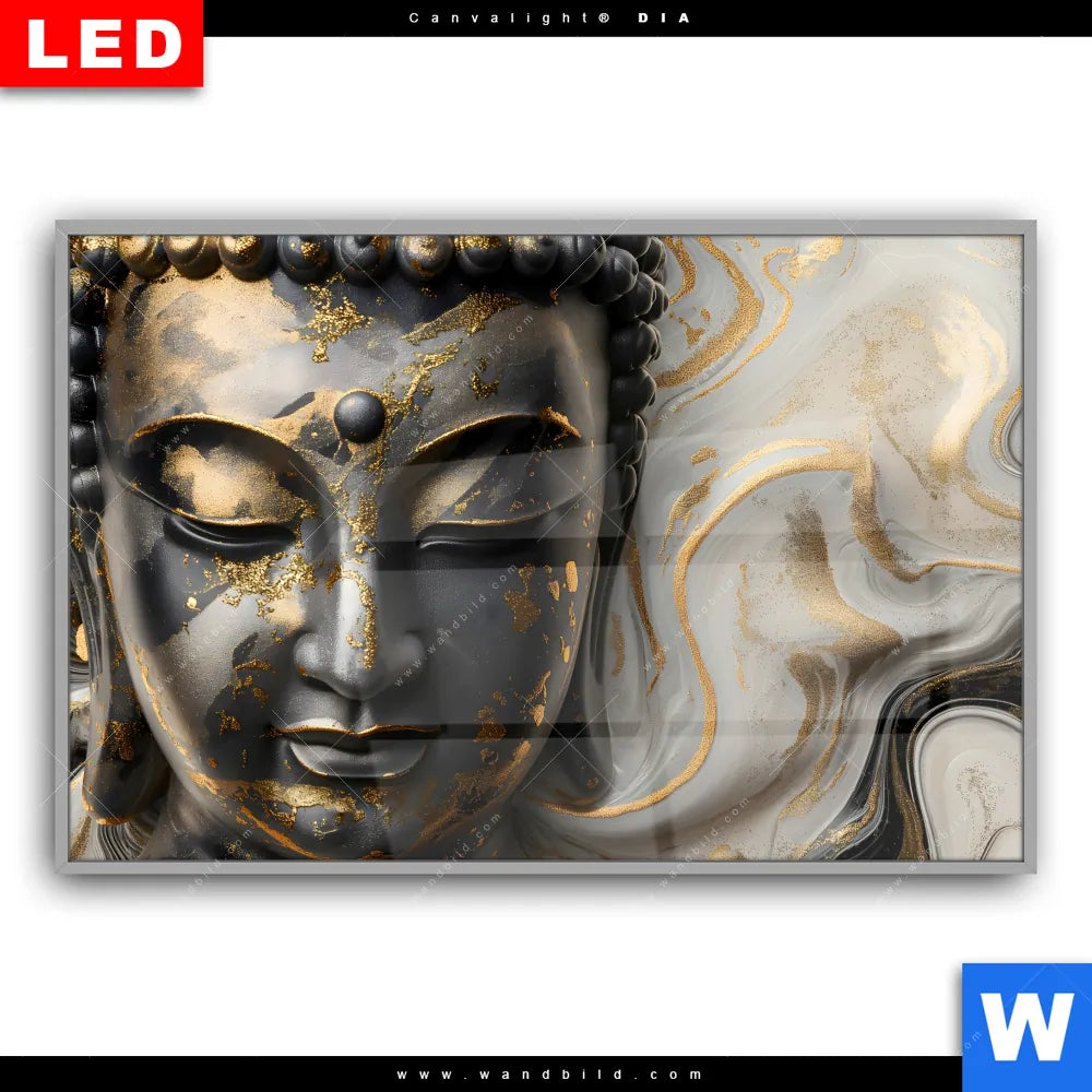 Canvalight® DIA Leuchtbild | Goldener Buddha Fluid Art | Querformat