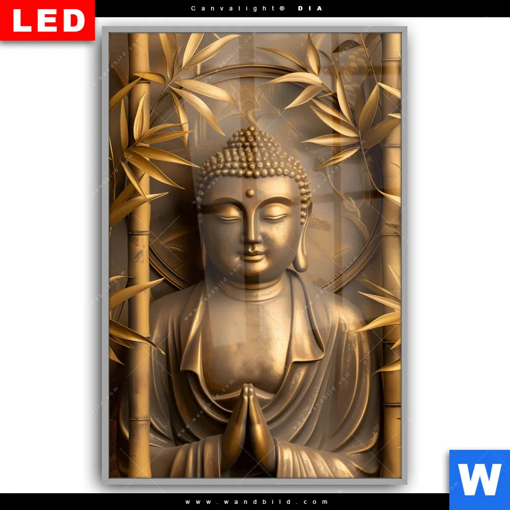 Leuchtbild Acrylglas Canvalight® DIA | Goldener Buddha im Bambuswald | Hochformat