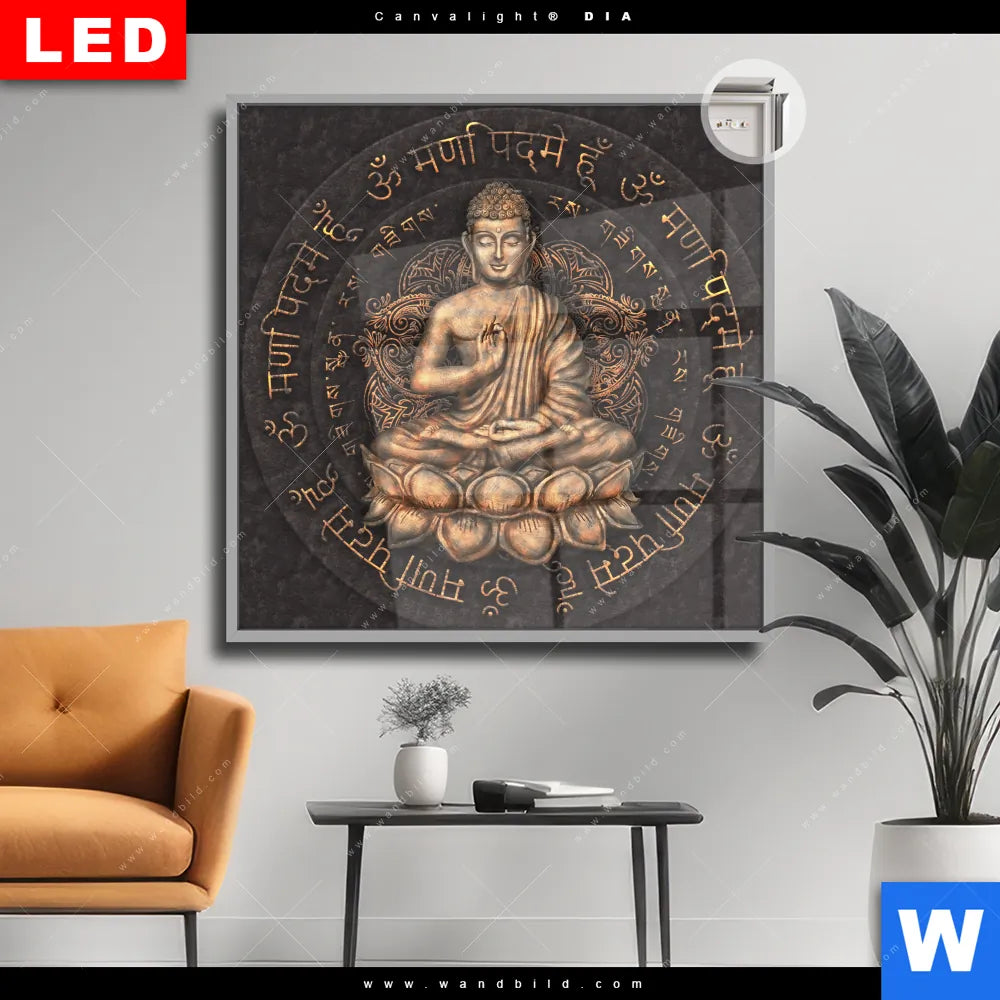 Canvalight® DIA Leuchtbild | Goldener Buddha No.2 | Quadrat