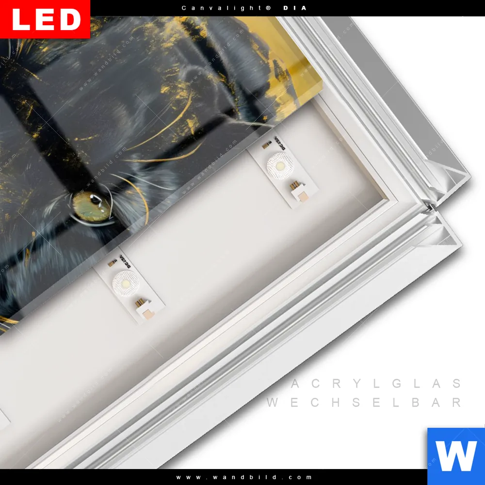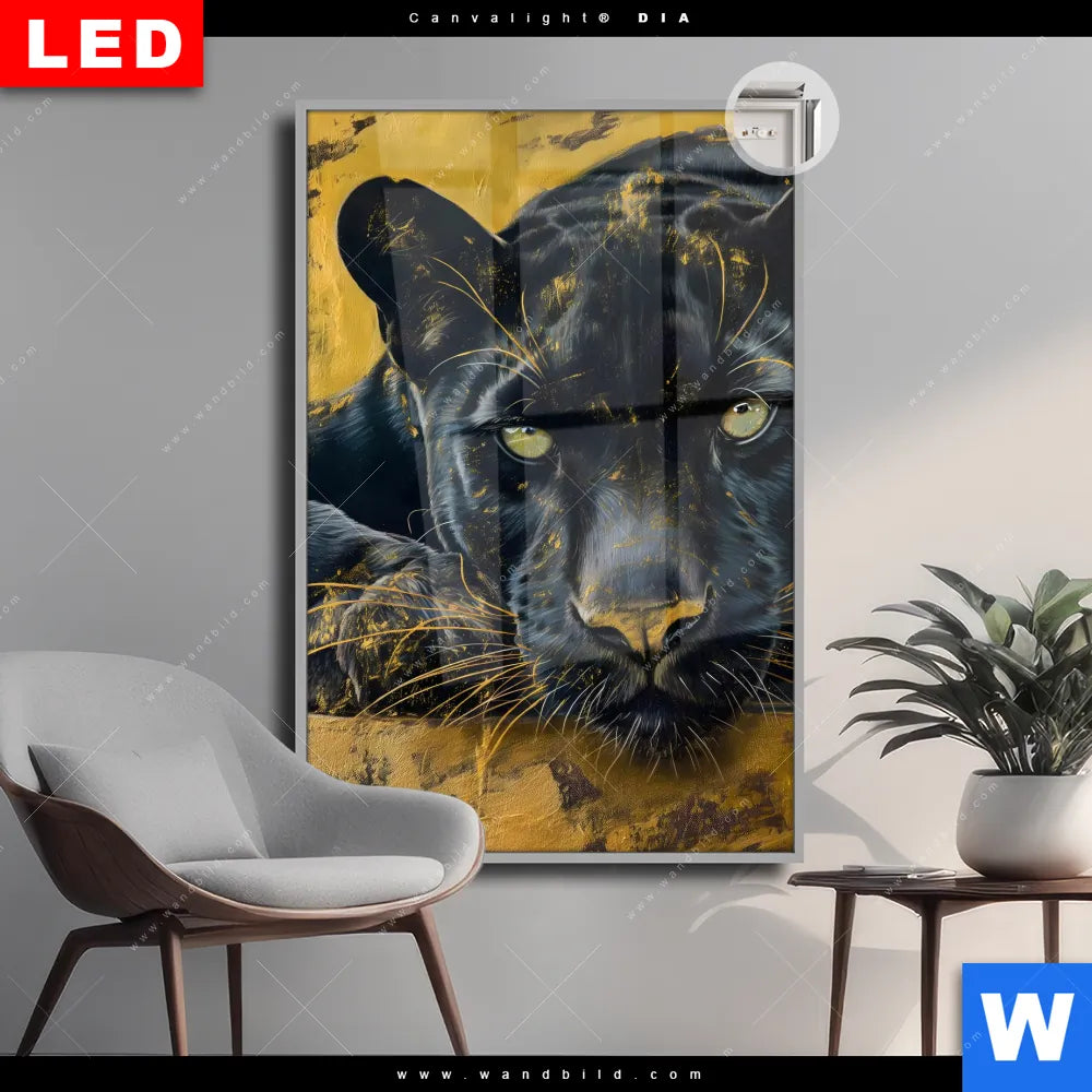 Canvalight® DIA Leuchtbild | Goldener Panther | Hochformat